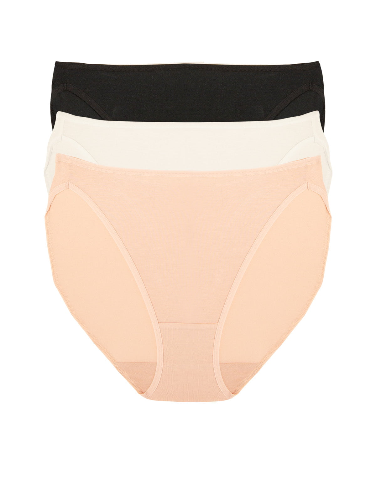 Stay cool, confident, and comfortably covered with the So Smooth Modal Hi Cut Panty. Made from ultra-soft, breathable modal fabric with moisture-wicking properties, it delivers all-day freshness and a barely-there feel. The hi-cut leg design creates a flattering, elongating effect, while the full back coverage ensures a smooth, secure fit. With narrow elastic trim for a seamless silhouette, it’s the perfect everyday essential with a touch of elevated style.