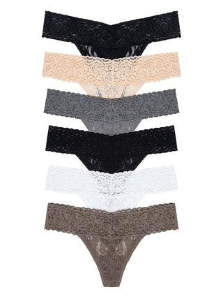 Signature Stretch Lace Low Rise Thong 6-Pack