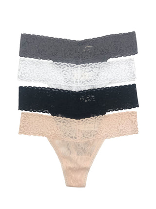 Signature Stretch Lace Low Rise Thong 4-Pack