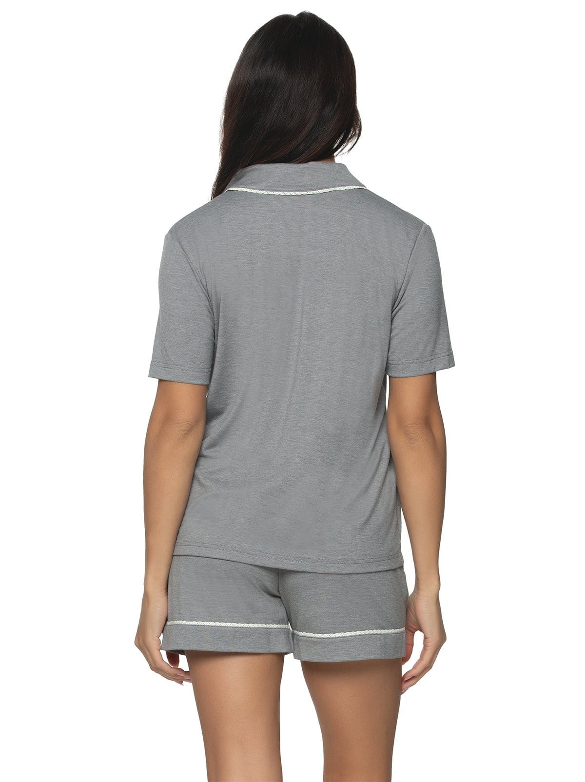 Experience bedtime luxury with our new Jessie Pajama Short Set. Made from ultra-soft jersey knit, this set includes a pocketed button-up and drawstring shorts with chic contrast piping. Get ready to relax in style.