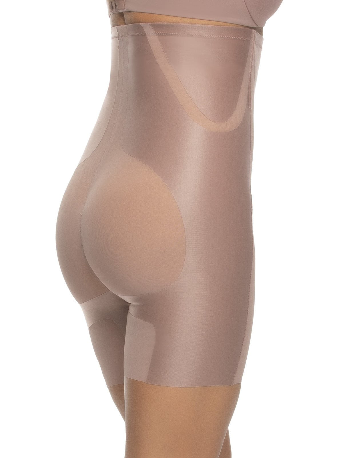 This all new high-wasited short features targeted sculpting in beautiful satin microfiber in the tummy, side waist, back, and thighs with an added sling for extra lift in the rear. Mesh panels between bonded panels allow for release and breathability between targeted compression zones. Silicone at top waist along with high-waist design keeps everything in place, beautifully.