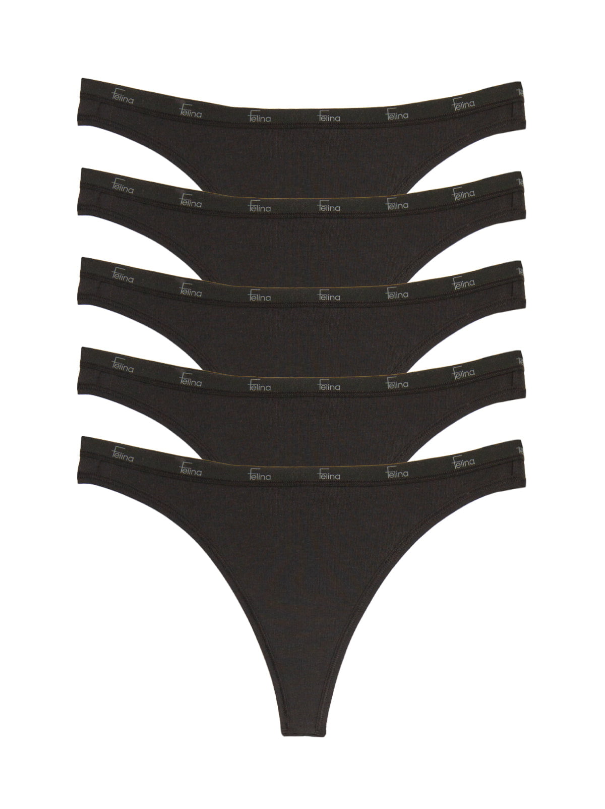 Everyday comfort meets timeless style with our Signature Cotton Thong 5-Pack. Designed with a sleek branded waistband, this essential collection delivers the perfect blend of softness, stretch, and breathability. The cotton-spandex fabric moves with you, while smooth flat elastic sits gently on the skin for a flawless fit under any outfit. A must-have staple she’ll reach for again and again.