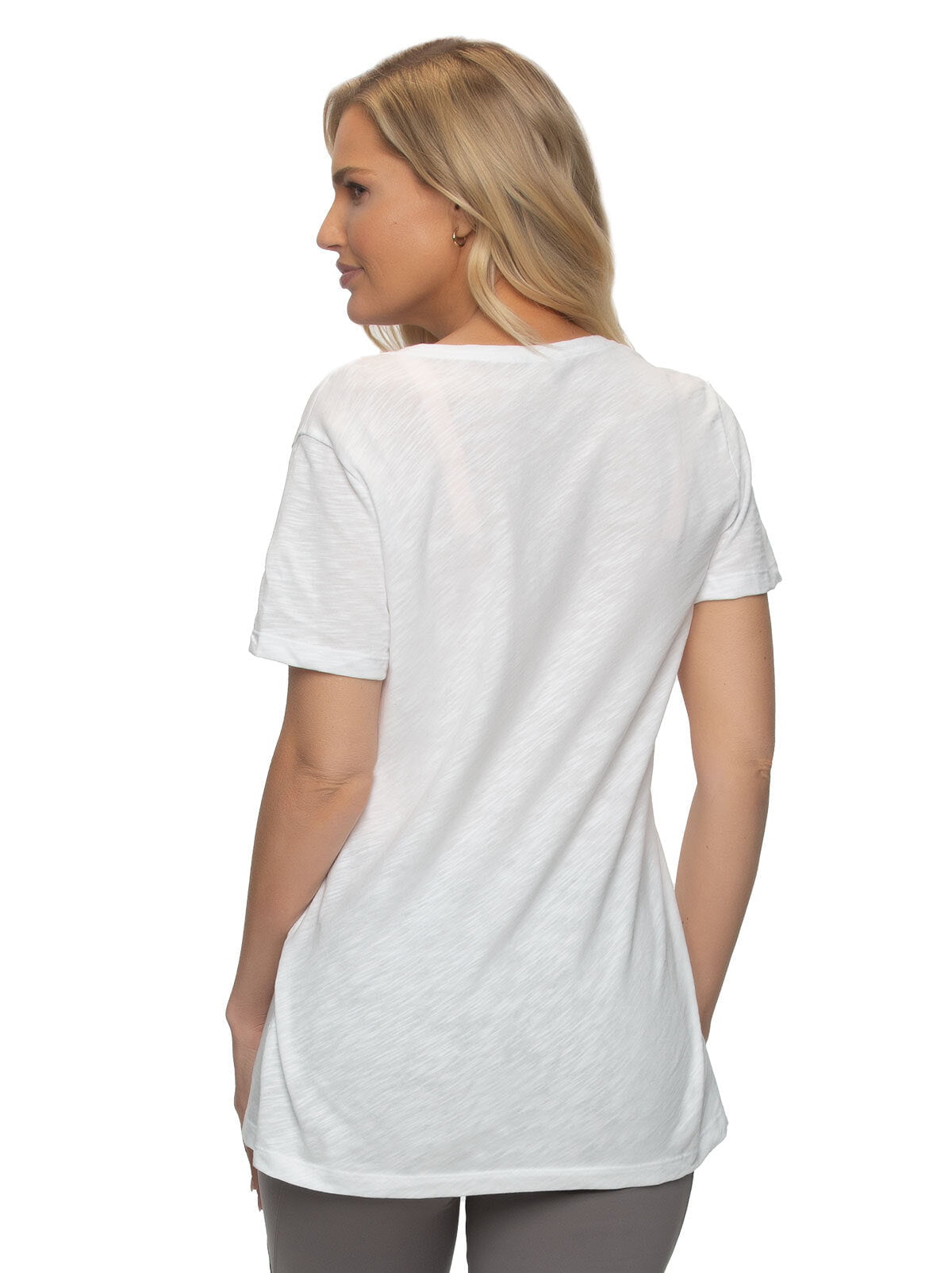 Join the millions who love this incredibly soft and lightweight Slub Jersey V-Neck T-Shirt, perfect for summer days. Made from a 60/40 cotton modal jersey blend, it feels like a dream against your skin. Designed for all-day comfort, this tee fits beautifully and is ideal for women seeking a versatile, comfortable shirt that can easily be dressed up or down. Once you try it, you won’t want to take it off.
