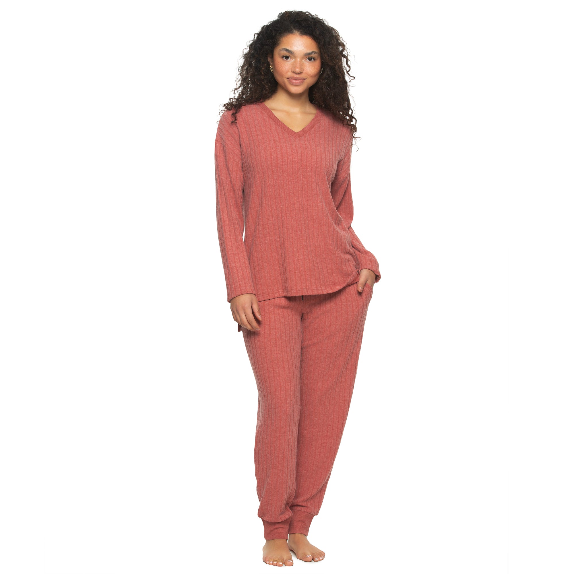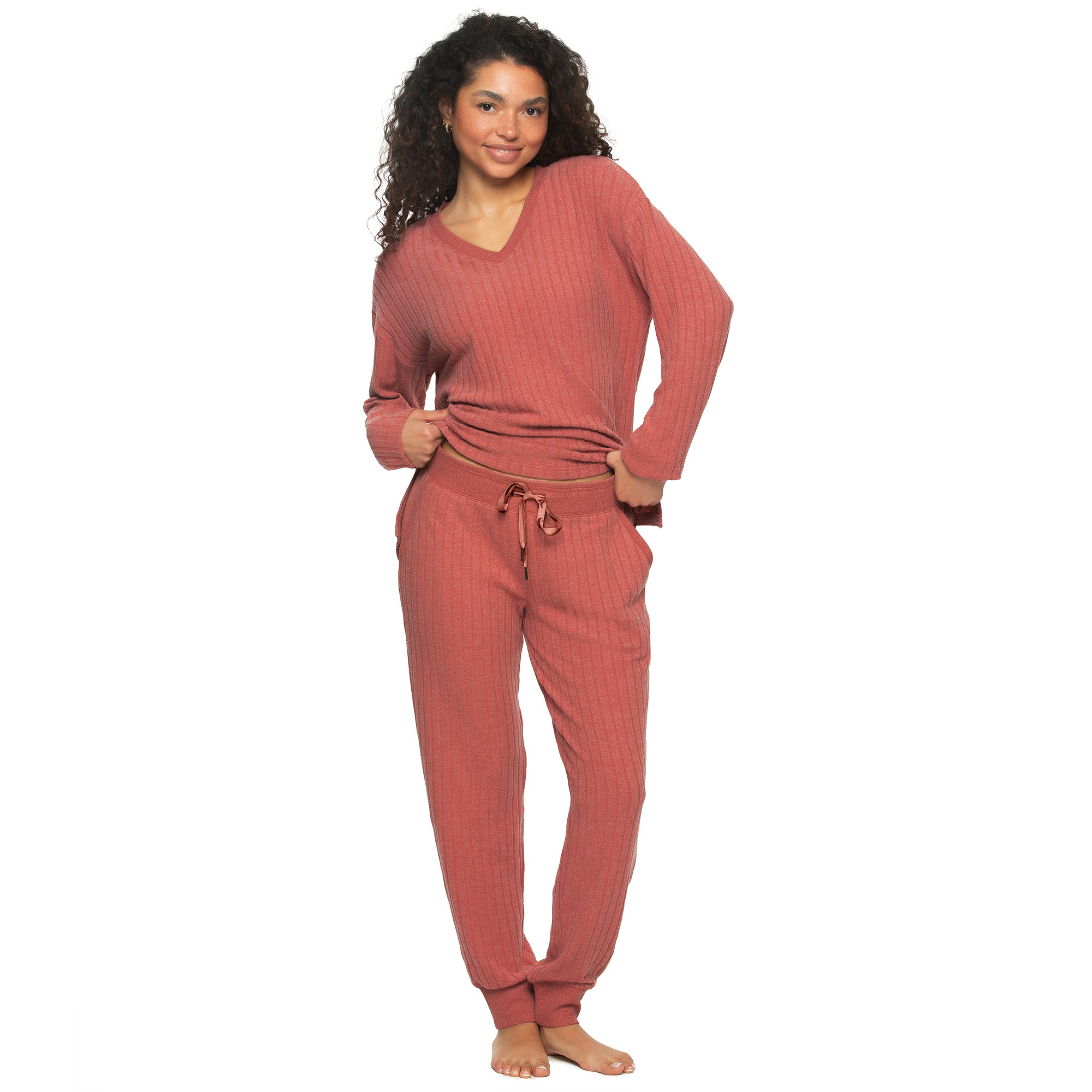 Elevate your comfort and style with our V-Neck & Jogger Pant Set. This versatile ensemble is perfect for cozy days at home or stylish outings. The flattering V-neck top can be layered in colder months or worn alone when the weather warms up, while the ultra-soft fabric feels luxurious against your skin.