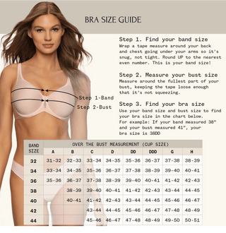 To measure bra size, all you need to get started is a soft measuring tape, a mirror, and a few quiet minutes to yourself. You’ll be taking two key measurements: your band size and your bustsize.